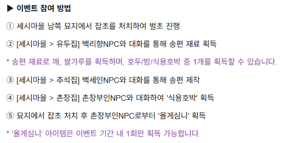 바람의나라 세시마을 추석 올게심니 획득 방법 소개