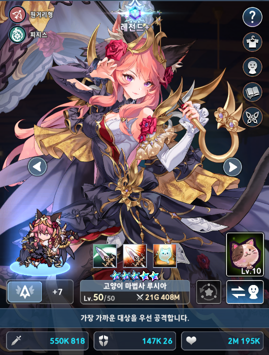 1+1캐릭터가 주로 하나 아쉬운 상태로 출시하는데 꽤 나쁘지 않은 퓨어 딜러이며 1+1만뽑을 모두하시는 것을 강추합니다. 필자도 주로 1+1은 1만만하고 피나를 사용해서 7로 마무리하거나 2만으로 7성마무리를 주로하는데 나쁘지 않은 것 같습니다. 악몽이나 깊악몽, 혼돈에서 사용해보았는데 혼돈의 경우는 유의미한 점수 폭이 올랐으니 참고바랍니다.(중독 디버퍼라 오랫동안 사용할 것 같습니다.)